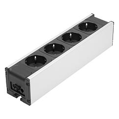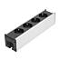 提示:拥有坚固工业品质的电源插线板,适用于工作场所的电源供应。插座嵌在铝制型材框架中,背面有 I 型 8 槽。凹槽可用于通过单独提供的附件连接到型材凹槽和表面元件。