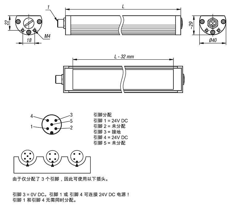 提示:该款 LED 灯具拥有坚固耐用的工业品质,适用于机床照明。该款 LED 灯具采用铝型材框架。通过端盖上螺纹孔以及单独订购的配件可将灯具固定在型槽和表面构件上。
