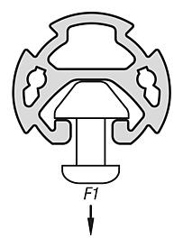 | 订货号 | 槽宽 | 型材 | L | L max. | Ix cm⁴ | Iy cm⁴ | Wx cm³ | Wy cm³ | 面积惯性矩 扭力 cm⁴ | 剖面区 cm² | F1 max. kN | 重量 约 kg/m