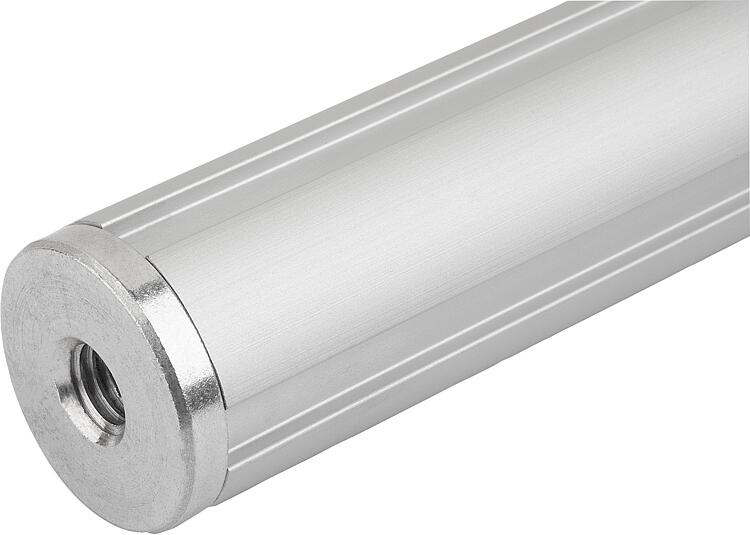 螺纹嵌件在正面压入 Ø30 型材管中。它们适用于连接调平脚、脚轮或其他配件。