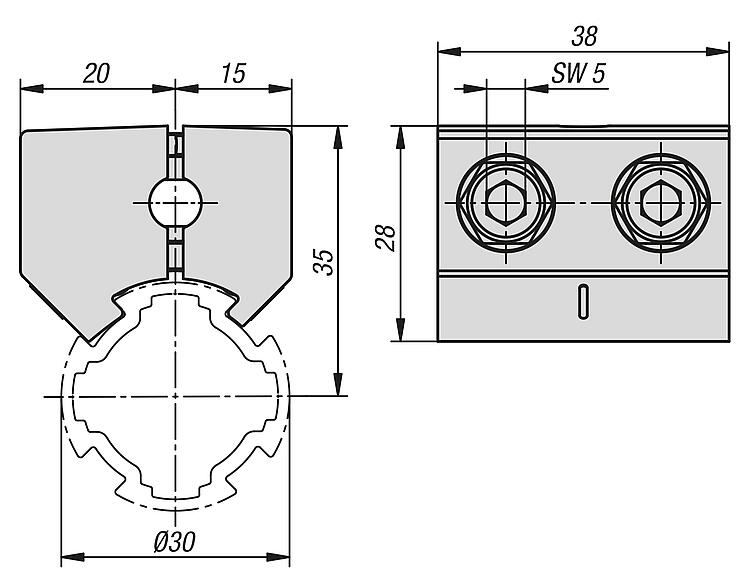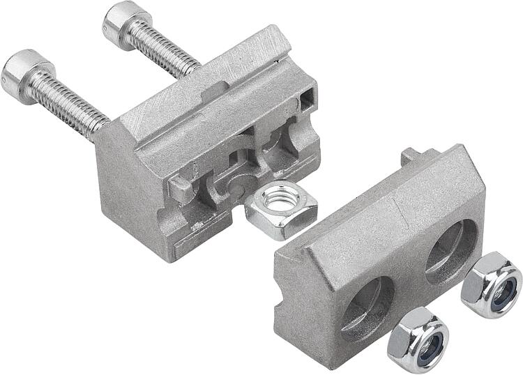 组件可以从五个侧面拧到多块上。具有不同高度的 2 部分多块的两半允许附件连接在不同的高度。附加部件可以与圆管型材相切或相距 5 mm 安装。供货范围1 多块 2 部分。 2 个螺钉 DIN EN ISO 4762 (DIN 912) - M6 x 20,镀锌。 1 个四角螺母 DIN 557 - M6,镀锌。 2 个自锁螺母 ISO 10511 - M6,镀锌。