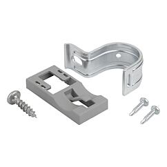 产品说明材料:钢制夹钳 垫片塑料 PA,玻璃纤维增强。 钢制螺栓规格:夹钳镀锌。 类似于 RAL 7042 的垫片灰色。 镀锌螺丝。提示:用于将桌面固定到外径为 30 mm 的圆管和型材管上。