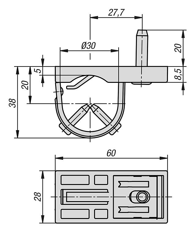 提示:Ø30 滑动条可用于覆盖桌面和型材管之间的间隙。供货范围1 个夹钳。 1 个间隔件。 1 个木螺钉 6 x 25,镀锌。 2 个钻孔螺钉 DIN 7504 形式 N - 3.9 x 16,镀锌。特点: 下载此处为收集信息的 PDF: