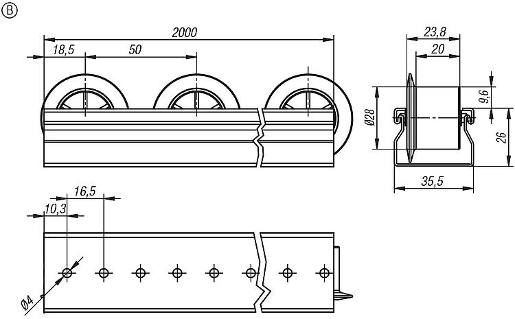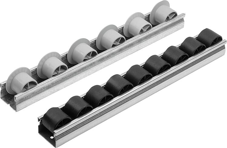 产品说明材料:滚轮轨道型材:钢制。 滚轮:PP 塑料。 轴:钢制。规格:滚轮轨道型材:镀锌。 滚轮:灰色,类似于 RAL 7042。黑色 ESD 版本。 轴:镀锌。提示:坚固耐用、运行平稳的滚轮轨道。系统已安装完毕。滚轮轨道型材包括安装在钢轴上的塑料滚轮。紧密的轴间距保证了平稳、无干扰的运行。如果需要,可以将钢板制滚轮轨道型材轻松切割成所需长度。