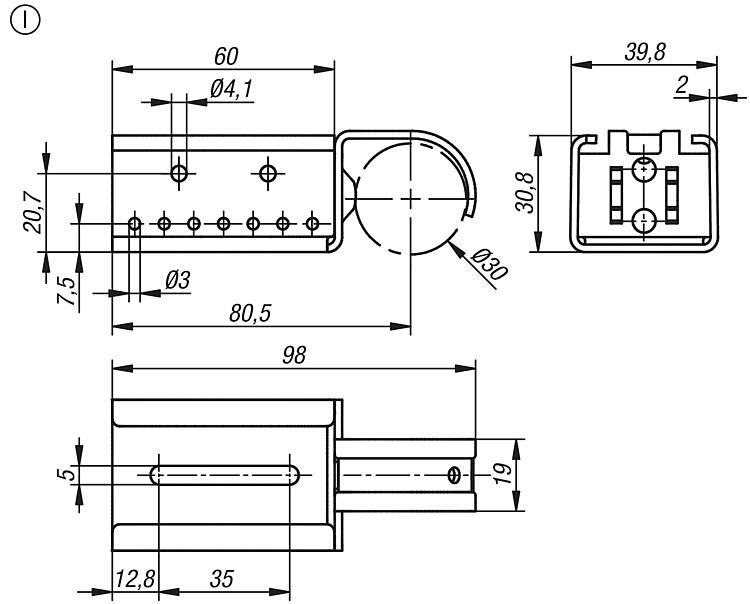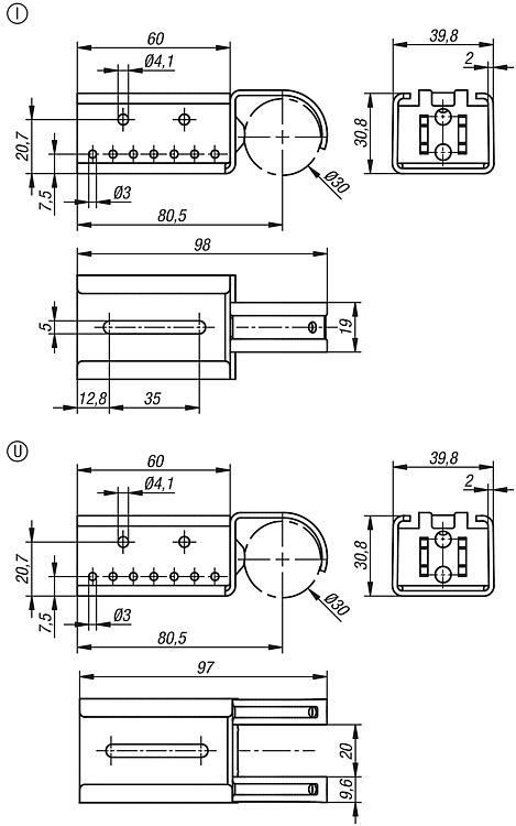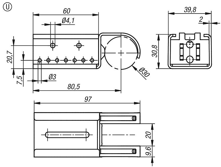 用于钢制辊道的钢制可变悬挂支架 Ø 30,U 型