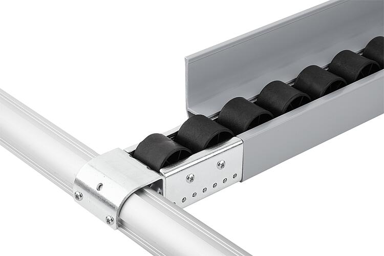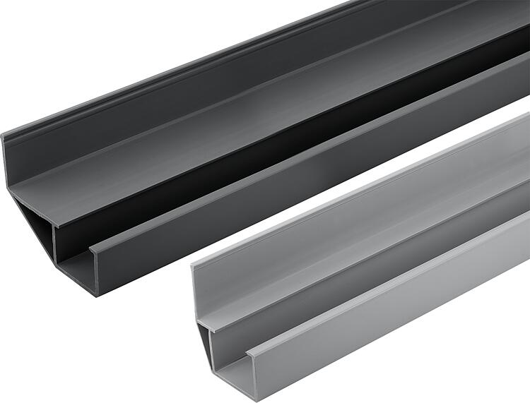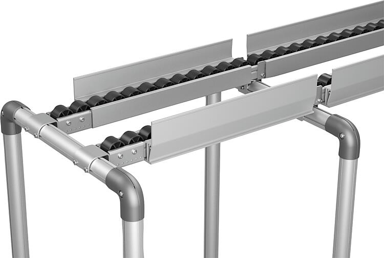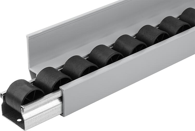 规格:类似于 RAL 7042 的黑色或灰色。提示:导轨将运输的货物牢牢地固定在辊道上。安装时,只需将导轨推入辊道上即可。