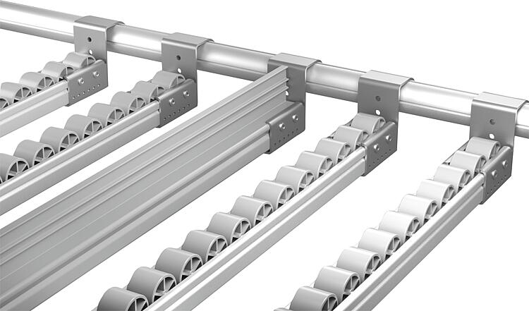规格:类似于 RAL 7042 的黑色或灰色。提示:导轨将运输的货物牢牢地固定在辊道上。安装时,只需将导轨推入挂钩支架或安装支架即可。