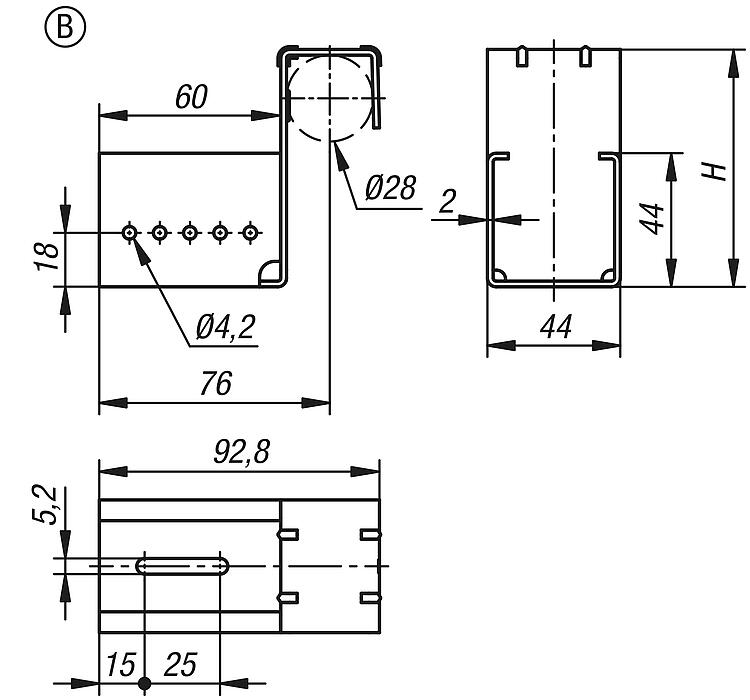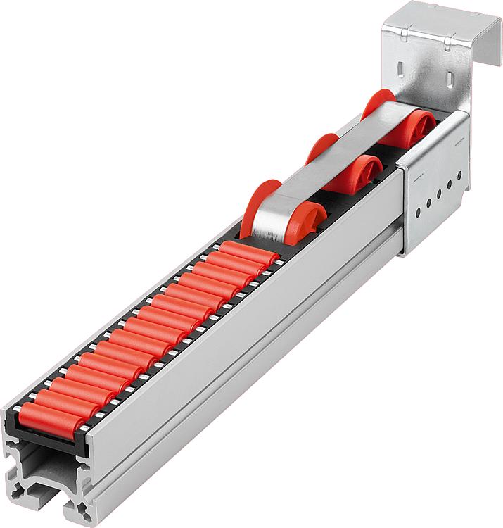 用于辊轮导轨的钢制悬挂支架,B 型,有限位器 |