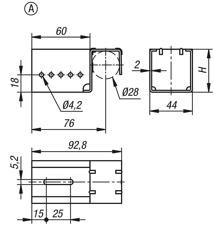 用于辊轮导轨的钢制悬挂支架,A 型,无限位器 |