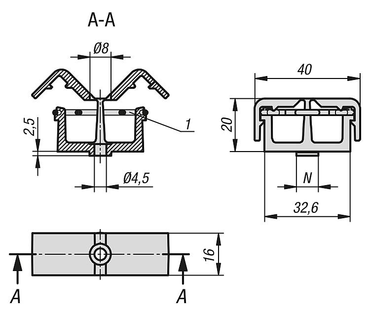 可以使用圆柱头螺钉或平头螺钉与内嵌块安装在表面元件或铝型材(槽 8 或10 mm)上。可夹紧 O 型环来固定电缆。