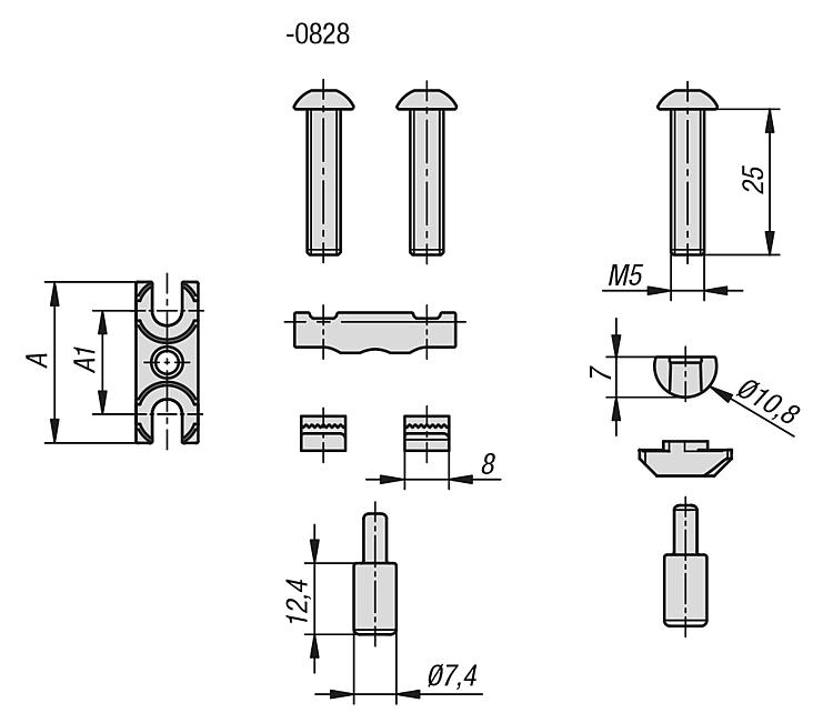连接套件 10215-0828 仅需要一个单侧钻孔加工 Ø11 mm。