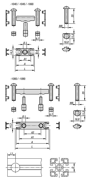 提示:连接套件适用于两个铝制型材的直角连接。连接套件允许自由定位型材。适用于承受较高负荷和吸收扭力。