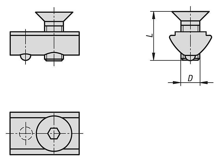 提示:供货范围包括两个沉头埋头螺钉 DIN 7991 和两个内嵌块。特点: