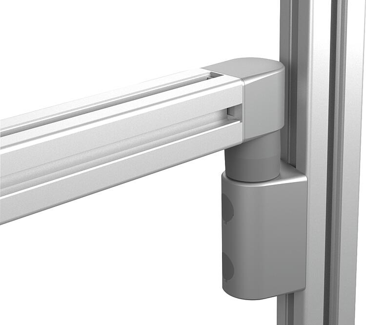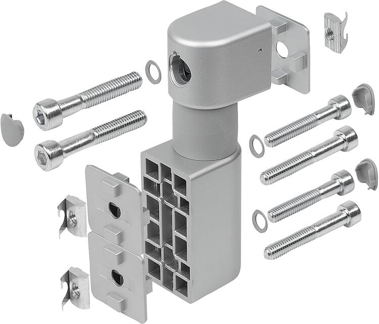 摩擦接头可纵向、横向或在正面连接到型材上。正面安装时,芯孔中必须有一个 M8 螺纹(深度最小值为 15 mm)。在平面上安装时,只需省去随附的型槽固定板即可。