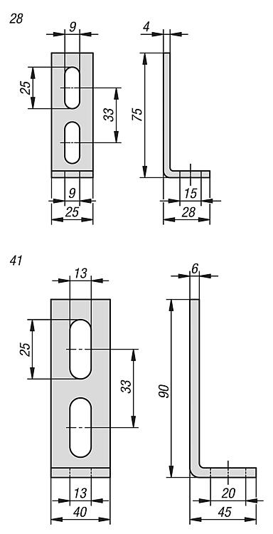 10925-6390° 连接角件 用于系统 28 和 41 C 型材安装导轨 |