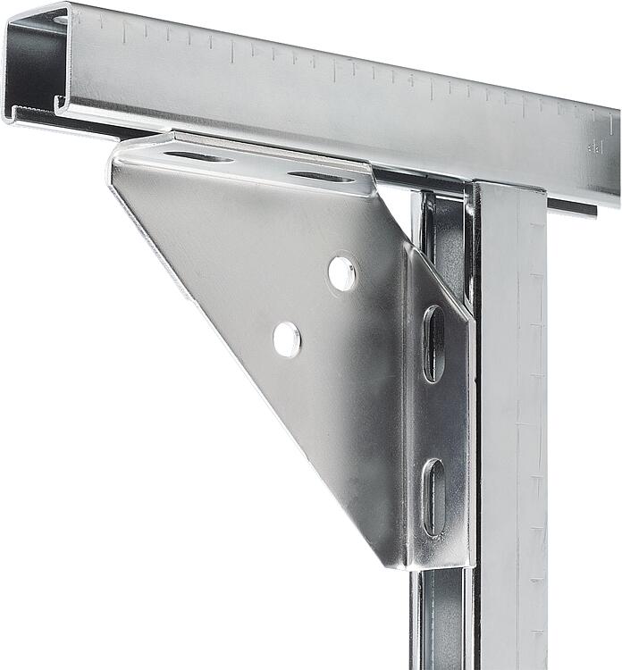 产品说明材料:钢制。规格:电镀锌。提示:用于以 90° 角连接两个安装导轨的框架角件。