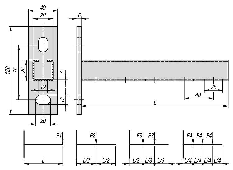 | 订货号 | L | 载荷 F1 最大 kN | 载荷 F2 最大 kN | 载荷 F3 最大 kN | 载荷 F4 最大 kN | CAD | 配件 | 价格 | 订购 |