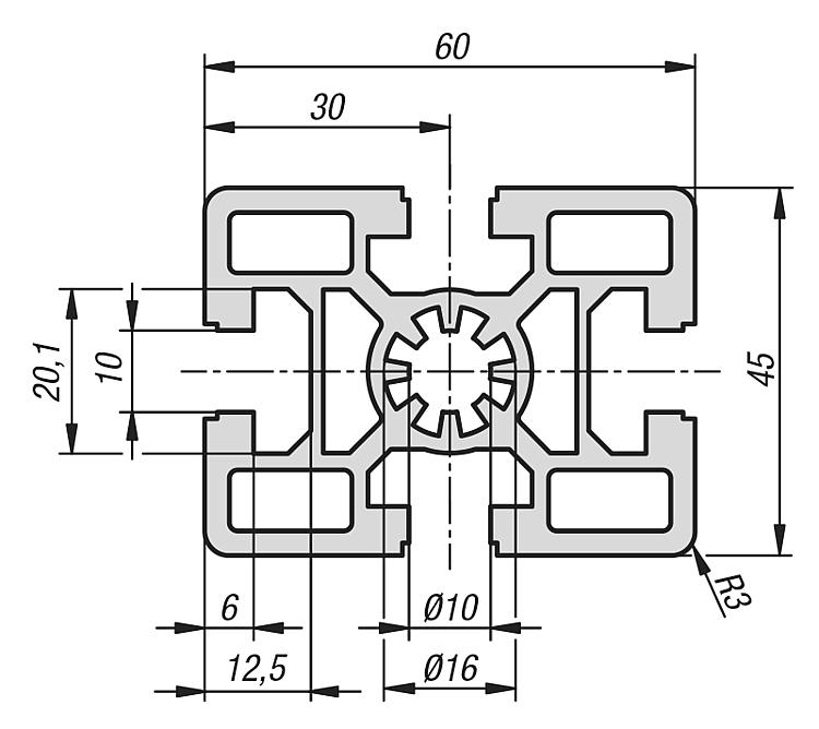 产品说明材料:铝制 EN AW-6063 T66 (AlMgSi0.5 F25)。规格:高温时效,自然色阳极氧化。提示:铝制型材用于通用结构。根据要求:斜角裁切 15°、30° 和 45°。 下载此处为收集信息的 PDF: