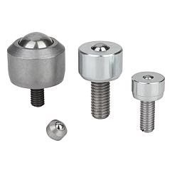 提示:万向球由一个带集成轴瓦的壳体、一个盖罩、一个负载球和多个承载球组成。用于测量仪、输送材料到净化室区域和小型机械机构中。图纸提示: