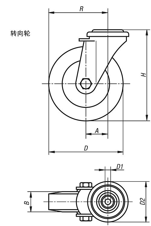 95010转向轮和脚轮,导电,带橡胶胎面,标准型 |