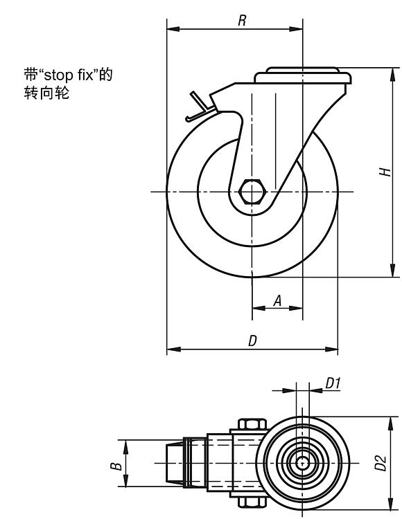 脚轮,带 stop fix 锁定系统,导电,带橡胶胎面,标准型 |