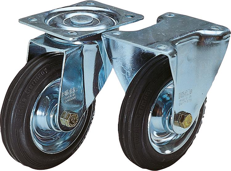 带实心橡胶轮胎钢板转向轮和脚轮,标准型