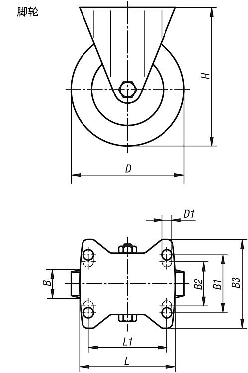 带实心橡胶轮胎钢板脚轮,标准型