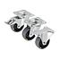 规格:压制壳体。带双球轴承(转动环中)的转向轮壳体。带滑动轴承的车轮。提示:轮轴用螺栓连接。转向轮和脚轮带螺栓装配板。导电型车轮,无痕,灰色。车轮的电阻低于 10⁴ Ω。应用:为了防止运输设备或传送带导致静电放电,使用导电车轮、转向轮和脚轮。因此可防止敏感的传送带损坏或在车轮使用者身上出现静电放电现象。温度范围:-20 °C 至 +60 °C
