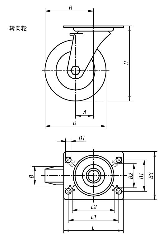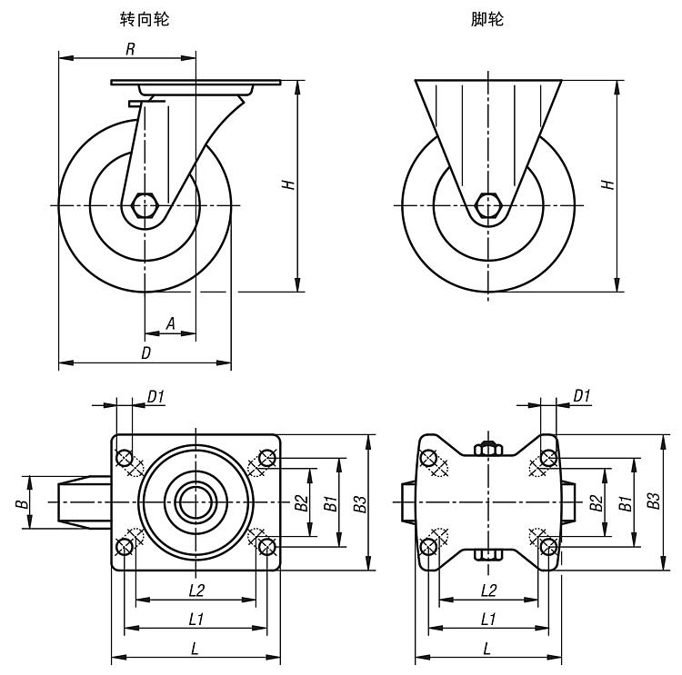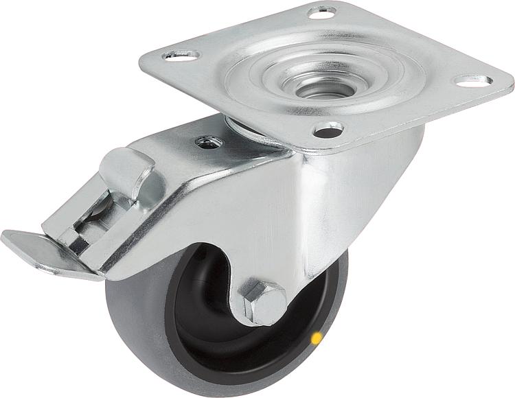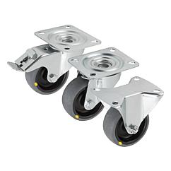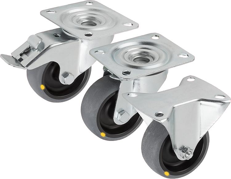 钢板转向轮和脚轮,导电,带橡胶胎面,标准型