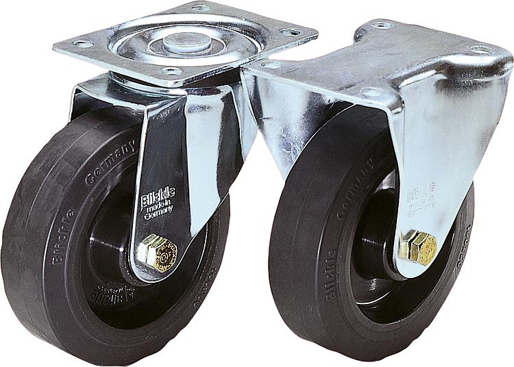 带硫化弹性实心橡胶轮胎的钢板转向轮和脚轮,标准型