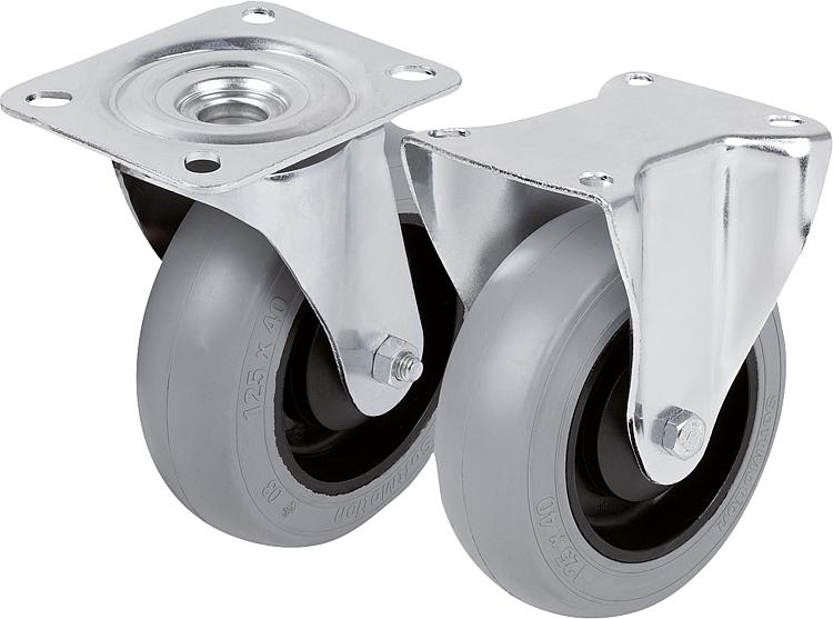 钢板脚轮,带软橡胶轮胎