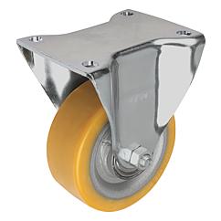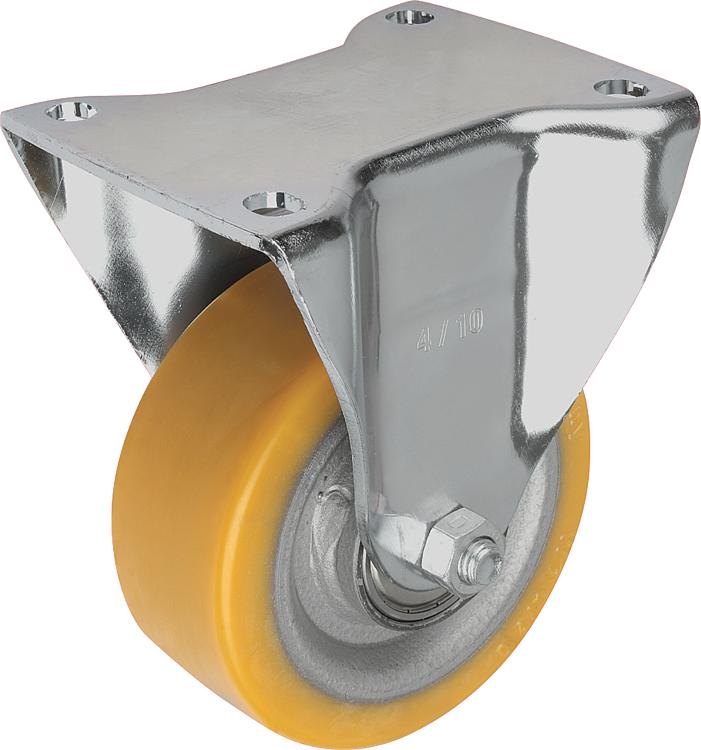 这些辊轮尤其抗撞击和冲击。车轮耐磨、有弹性并且低噪音。用螺栓固定的轮轴。