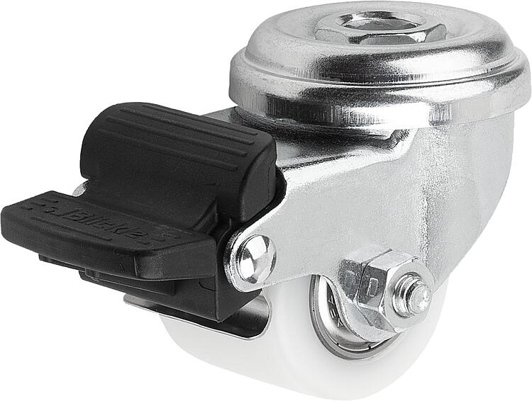 带双球轴承(转动环中)和球保护装置的转向轮壳体。