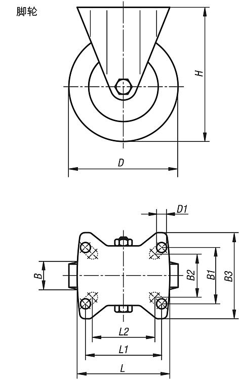压制壳体。带双球轴承(转动环中)的转向轮壳体。带滑动轴承的车轮。