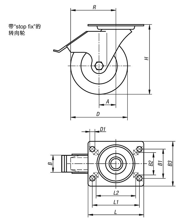 Datasheet 95046 钢板转向轮和脚轮 用于无菌环境