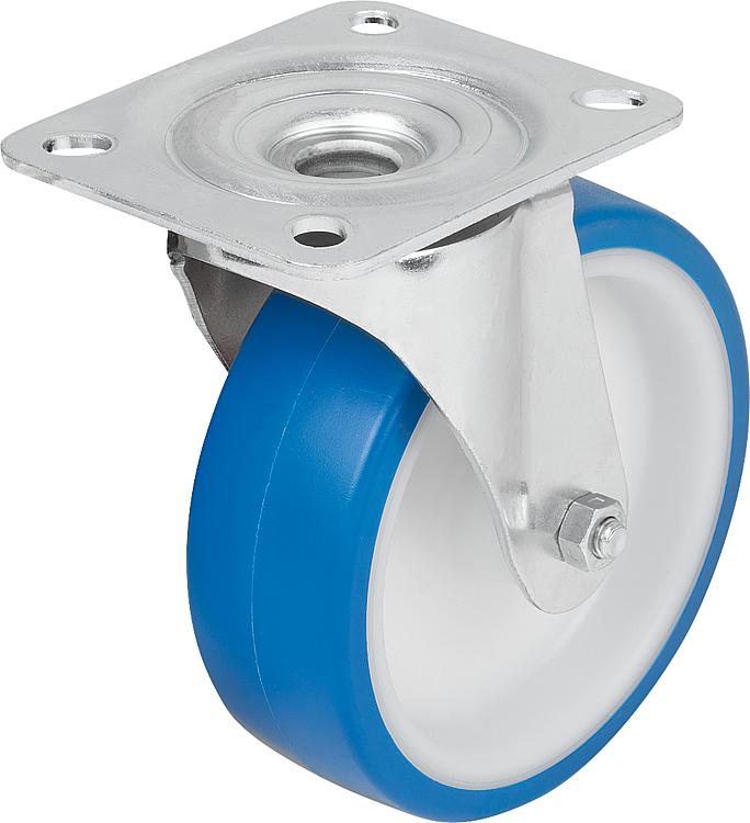 压制壳体。带双球轴承(转动环中)的转向轮壳体。带滑动轴承的车轮。