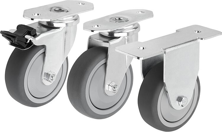 钢制转向轮和脚轮,用于铝制型材的 TPU 胎面