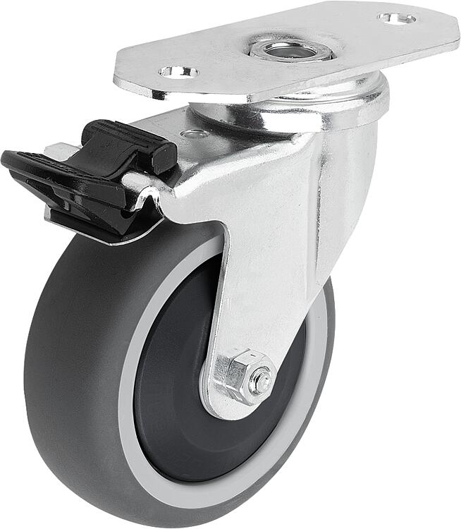 产品说明产品描述:铝制型材系统适用于现代机器、厂房和设备制造。铝制型材滚轮具有灵活性、多功能性和用户友好性等特点。其设计体现了简洁性和功能性的精髓。材料:钢板制壳体。 热塑性聚氨酯车轮 (TPU)。 轮体采用尼龙 6。规格:电镀锌和经过蓝色钝化处理的钢板,不含 Cr6。 热塑性聚氨酯 (TPU) 深灰色。 银灰色尼龙 6。提示:通过两块专门开发的固定板,几乎可以保证对任何铝制型材的通用适应性。标准系列包括各种滚轮,如脚轮或带制动器和不带制动器的转向轮。 滚轮对许多腐蚀性介质具有很高的耐化学性。 由优质热塑性聚氨酯 (TPU) 制成的胎面硬度为 94° Shore A,并喷涂在车轮中心。胎面无痕,无接触变色,具有低滚动和转向阻力以及高耐磨性的特点。应用:带热塑性聚氨酯胎面的滚轮可用于工具车、地板滚轮或无菌环境,例如食品工业。