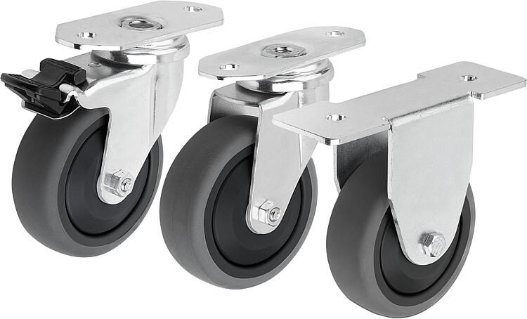 95046-18钢制转向轮和脚轮,用于铝制型材的导电 TPE 胎面 |