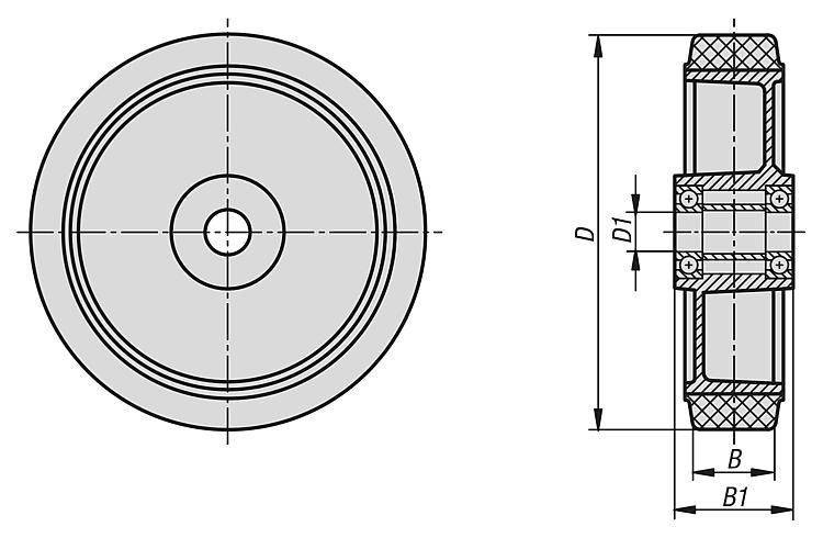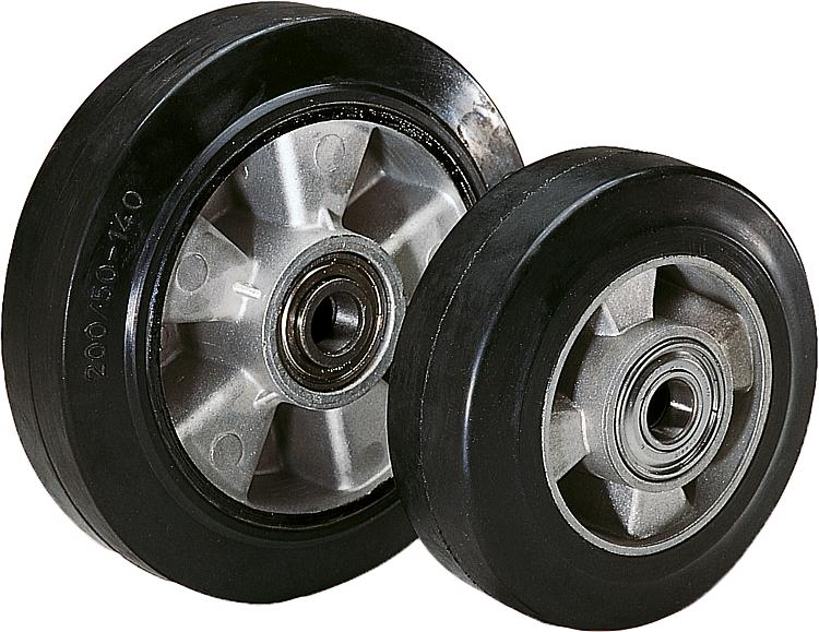 预先硫化轮毂上的轮胎。带弹性实心橡胶轮胎的车轮具有高耐磨强度、低滚动阻力和良好的行驶舒适性。-30°C 至 +80°C 的工作温度范围。
