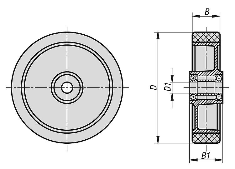 此车轮有弹性、耐磨、保护地面、噪音低并且具有低滚动阻力。
