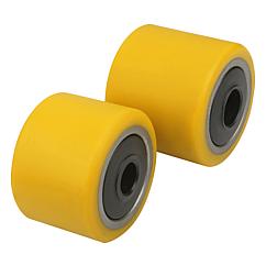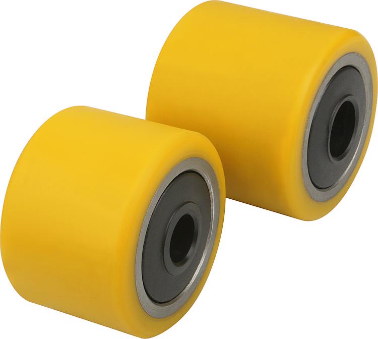 钢管制轮体,带滚珠轴承。Extrathane胎面 92°邵氏硬度A。
