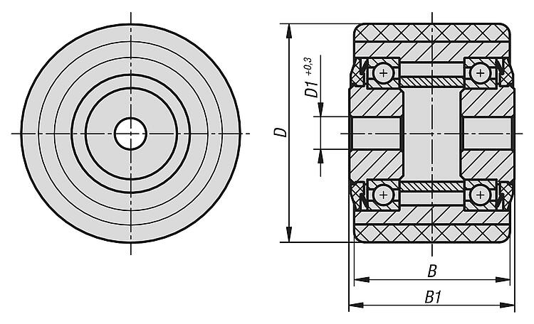 防水的滚珠轴承。胎面经过牢固灌注。此车轮耐磨、无染色剂、保护地面、低噪音、有弹性并在长期停机时具有极高复原力以及高抗切割性和抗撕裂性和低滚动阻力。