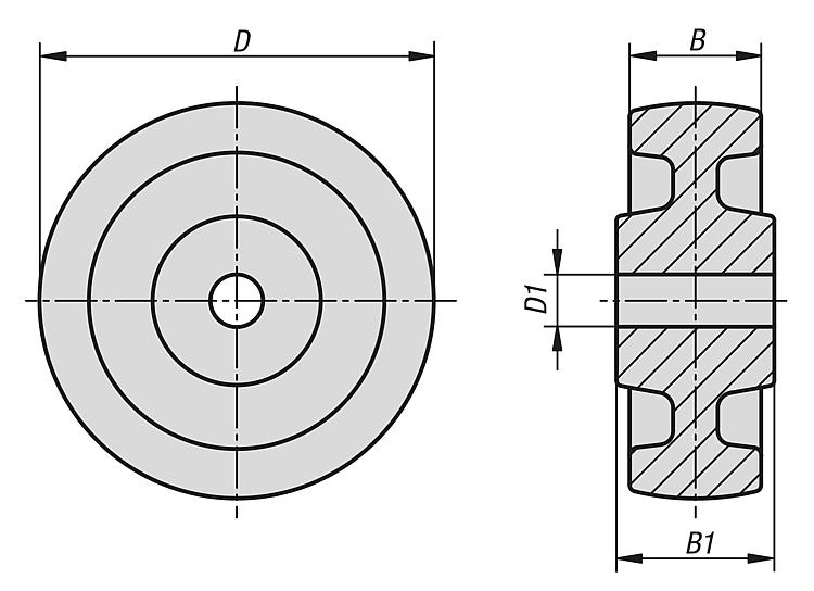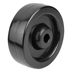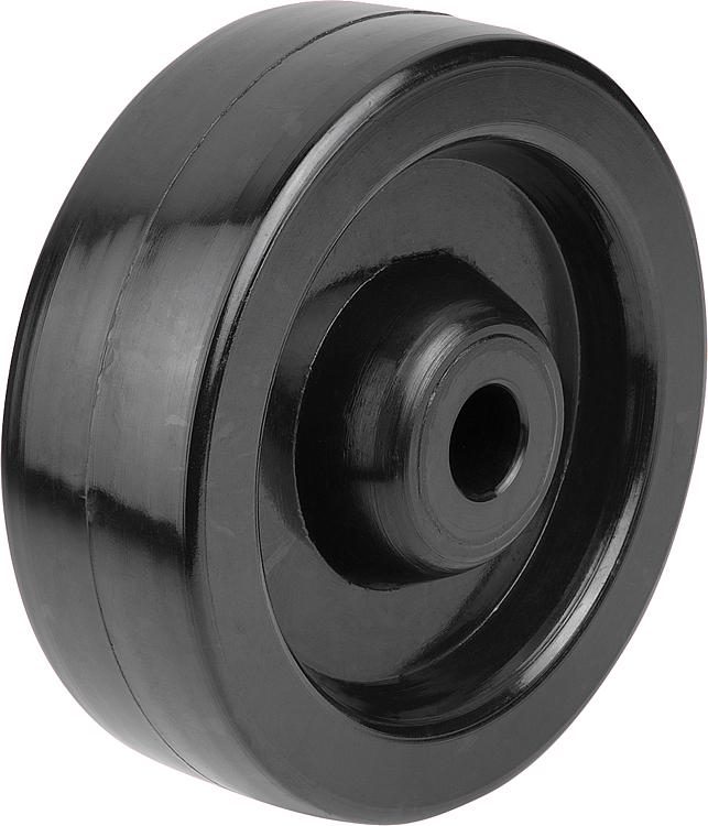 产品说明材料:热固性塑料 PF.规格:硬度软 90° 邵氏硬度 D 黑色。 缺口冲击强度约为 2.5 kJ/m²。提示:热固性塑料脚轮适用于高温环境,在平滑地面上具有非常好的运动特性。
