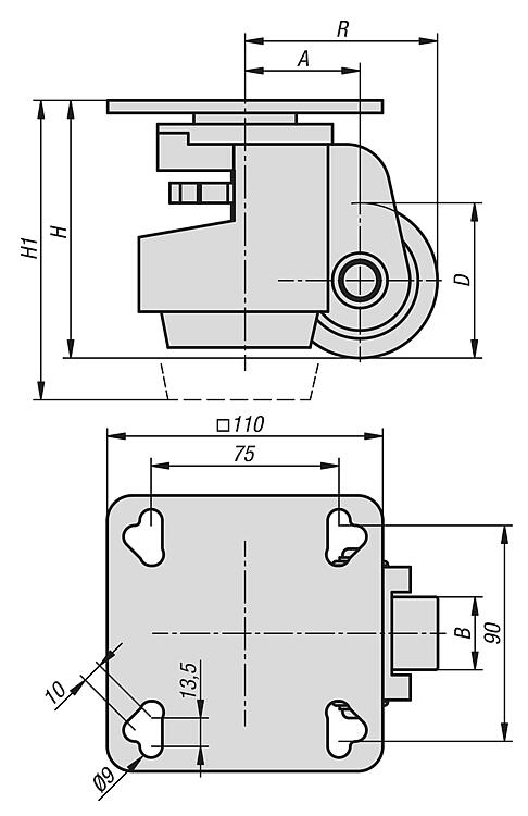 | H | H1 | R | 滚轮轴承 | 承载负荷 kg | 固定方式 | CAD | 配件 | 价格 | 订购 |