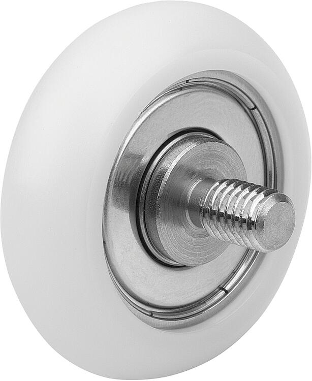 凸面塑料导向辊轮,分别提供不带和带不锈钢销轴 - 样式 B