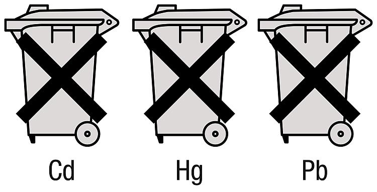 产品说明说明:不得以普通生活丢弃物的形式对电池进行废弃处理。作为最终消费者,您有义务返还/按规定处置废旧电池。可在用旧后在销售点或其附近免费返还电池(例如在经销商的收集点或地区收集点)。可也将废旧电池邮寄返还给我们。含有害物质的电池具有一个或两个下列标志,其由用于含有害物质主要重金属分类的打叉垃圾箱和化学符号组成。