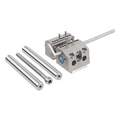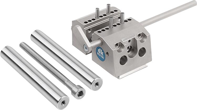 A 型:可在彼此成直角的 4 个位置将精密台钳放置在检测台上。 B 型:精密台钳可与所有(基本)快速释放支架连接,形成快速更换系统。这样,台钳就可以快速有效地安装在不同的快速释放支架上。根据要求:可延伸夹紧宽度至100 mm 或150 mm 的导杆套件。附件:配件 33225。 底板 34031。 定位台 34031-05。 基本快速释放支架 33227-05。 基本快速释放支架 34006。 基本快速释放支架 34021。 十字台 34031-10。 带斜角的快速释放支架 33227-10。 带可旋转斜角的快速释放支架 34007。 可旋转快速释放支架 34007-02。供货范围可调的长度挡块、用于夹紧宽度和主轴延伸达 75 mm的立柱组,以及 4 个 DIN 6325 4X20 固定销和操作工具。图纸提示:特点: 下载此处为收集信息的 PDF: