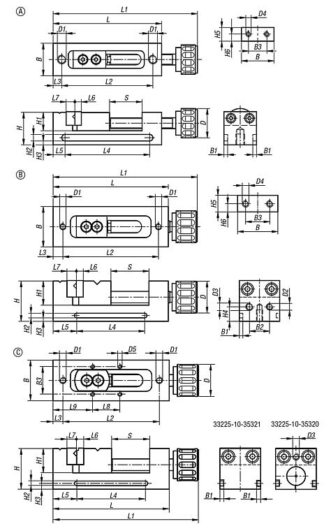 | 33225-10-15142 | A | 铝制 | - | 经哑光和铝阳极氧化处理 | 14 | 15 | 1,7 | - | 8,5 | 13,5 | M04X5 | - | - | M02 | - |  | | 根据要求 | | | 33225-10-15140 | A | 不锈钢 | 1.4021 | - | 14 | 15 | 1,7 | - | 8,5 | 13,5 | M04X5 | - | - | M02 | - |  | | 根据要求 | | | 33225-10-25231 | B | 铝制 | - | 经哑光和铝阳极氧化处理 | 23 | 25 | 3 | 12,5 | 15 | 19,7 | M04X7 | M04X5 | M5x8 | M4 | - |  | | 根据要求 | | | 33225-10-25230 | B | 不锈钢 | 1.4021 | - | 23 | 25 | 3 | 12,5 | 15 | 19,7 | M04X7 | M04X5 | M5x8 | M4 | - |  | | 根据要求 | | | 33225-10-35321 | C | 铝制 | - | 经哑光和铝阳极氧化处理 | 32 | 35 | 3 | - | 21 | 27,6 | M05X10 | - | - | M5 | M04x8 |  | | 根据要求 | | | 33225-10-35320 | C | 不锈钢 | 1.4021 | - | 32 | 35 | 3 | - | 21 | 27,6 | M05X10 | - | M5 | M5 | M04x8 |  | | 根据要求 | |