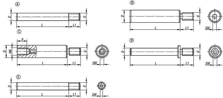 C 型有一个额外的内螺纹,用于根据需要延长立柱。